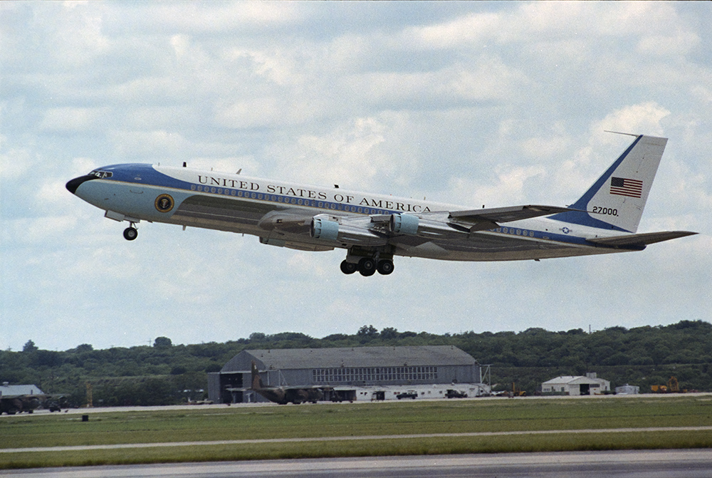 C2681-13, Air Force One taking off from Kelly Air Force Base during a trip to Texas. 06/24/1981.