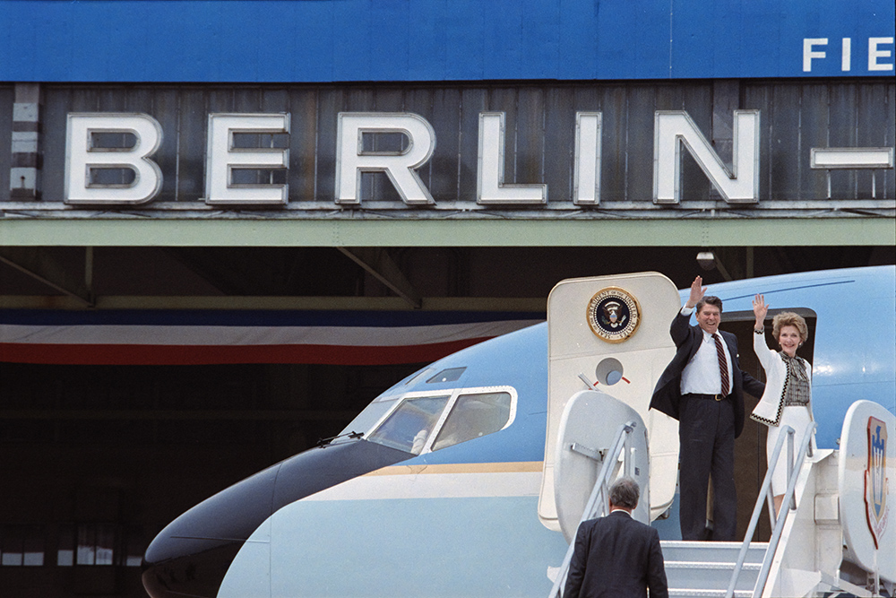 C41246-34, President Reagan and Nancy Reagan departing from Tempelhof airport in West Berlin. 06/12/1987.