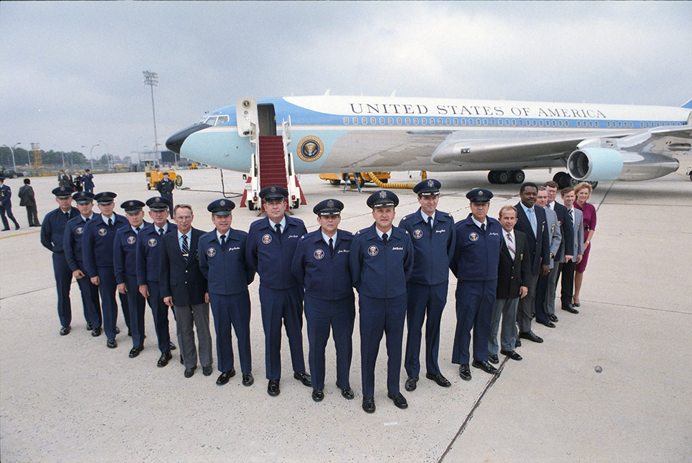 C25581-21, Photo Op. of Air Force One crew including pilot Robert Ruddick in front of Air Force One at Andrews Air Force base. 11/01/1984.