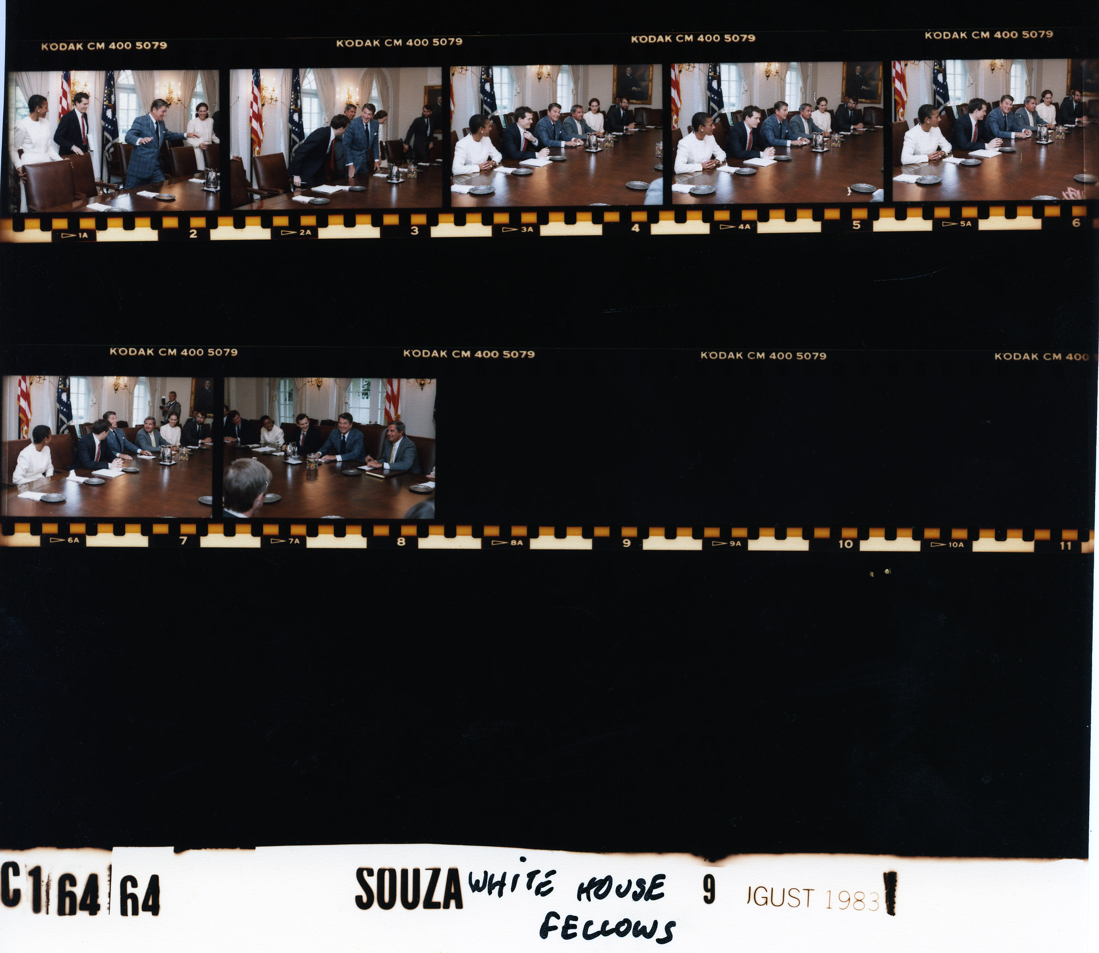 President Reagan, Fred Fielding, Roger Porter, unidentified