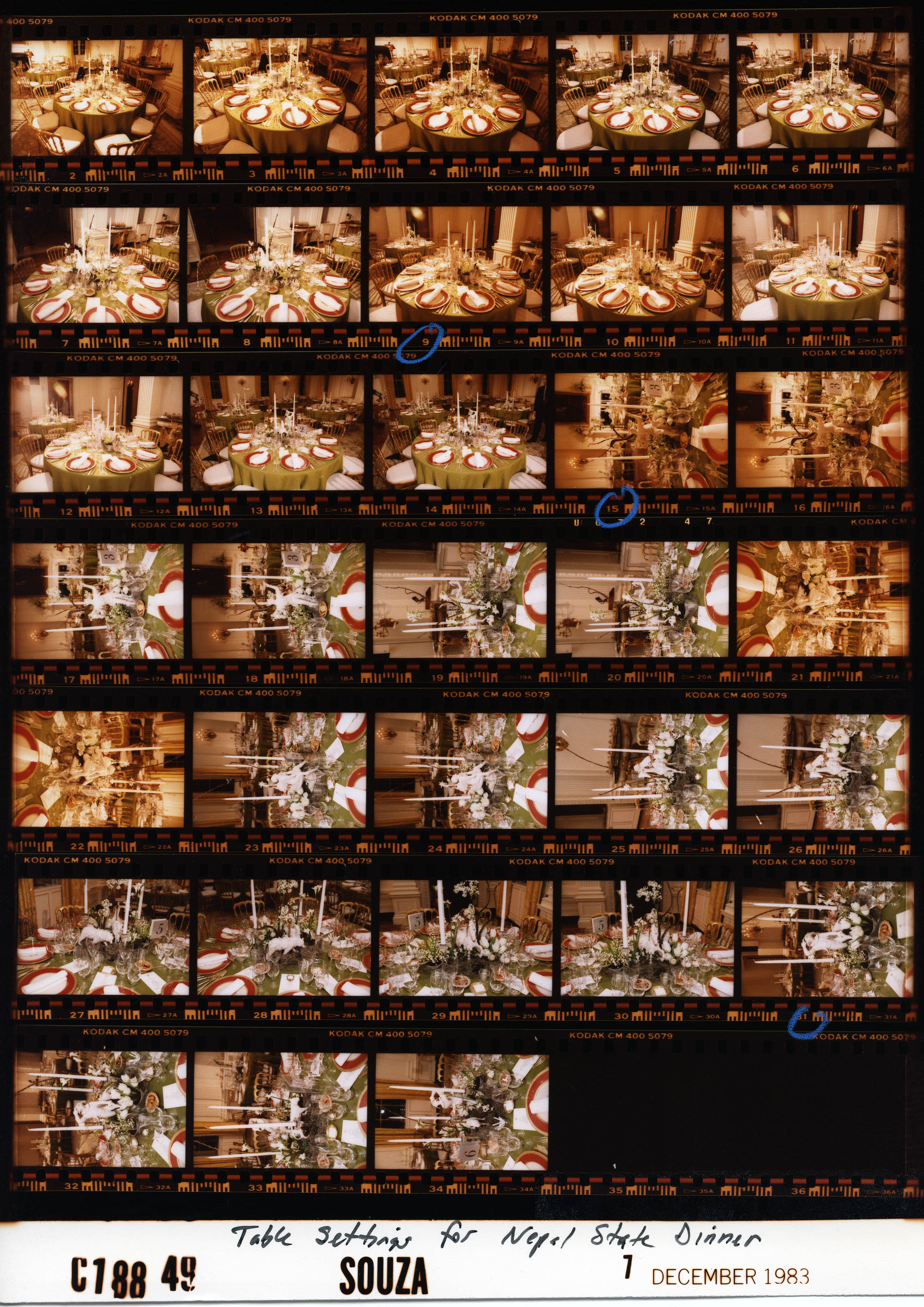 Table settings for State Dinner for King Birendra Bir Kikram Shah Dev of Nepal