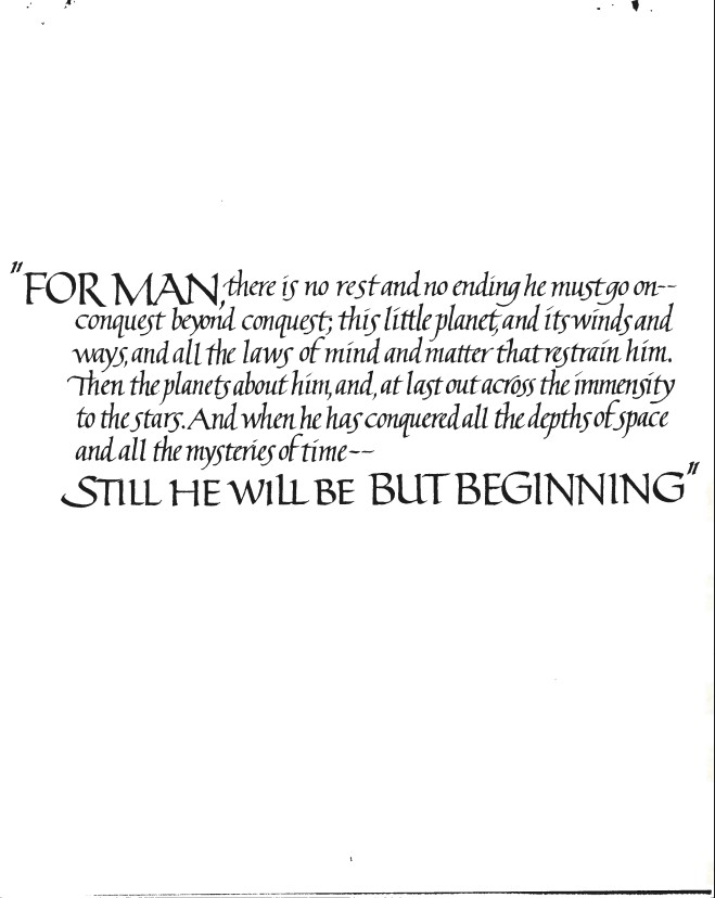 Quote “For man, there is no rest…” WHORM Subject File OS001 (Outer Space: Space Flight). Box 12. Case File 354903.