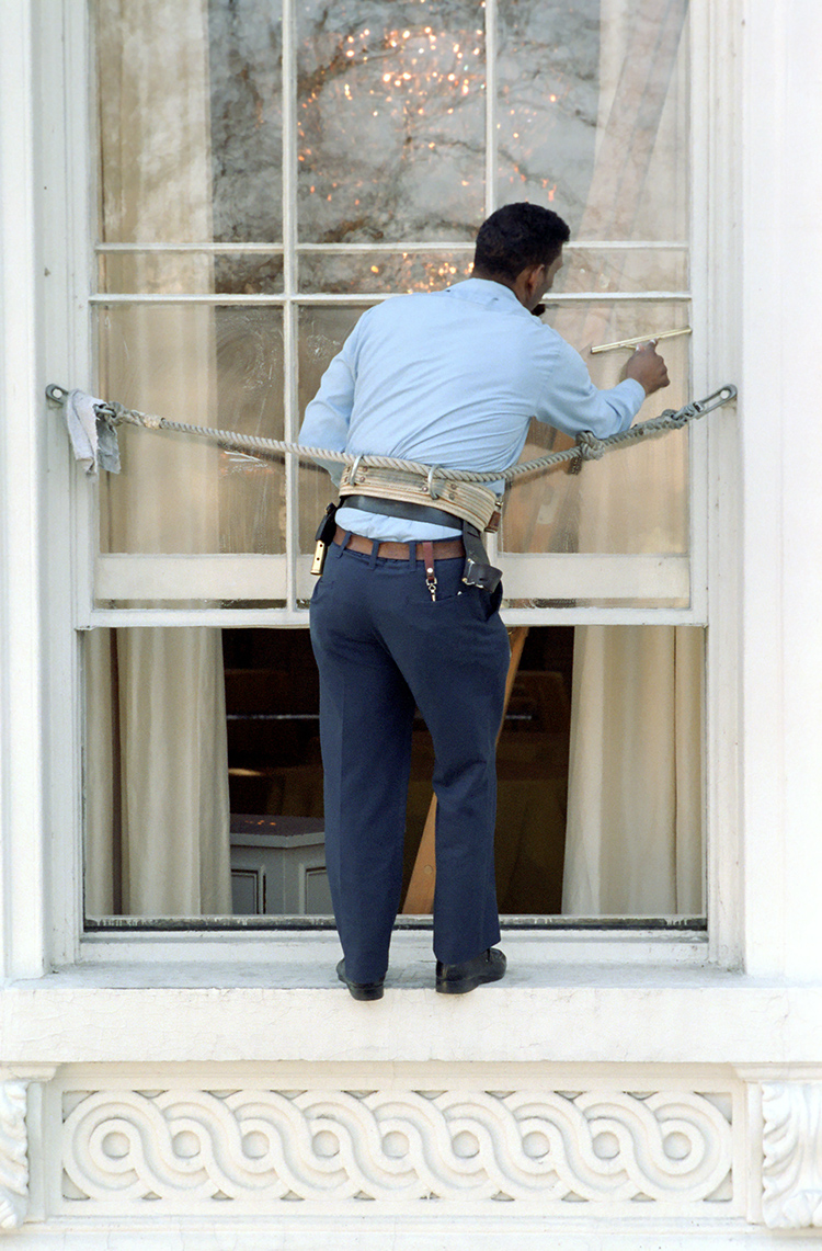 C12269 (03) 01/06/1983 … C12269 (03) … Domestic staff at work in the White House … Washington, DC … unidentified man washing windows … White House … Fitz-Patrick …