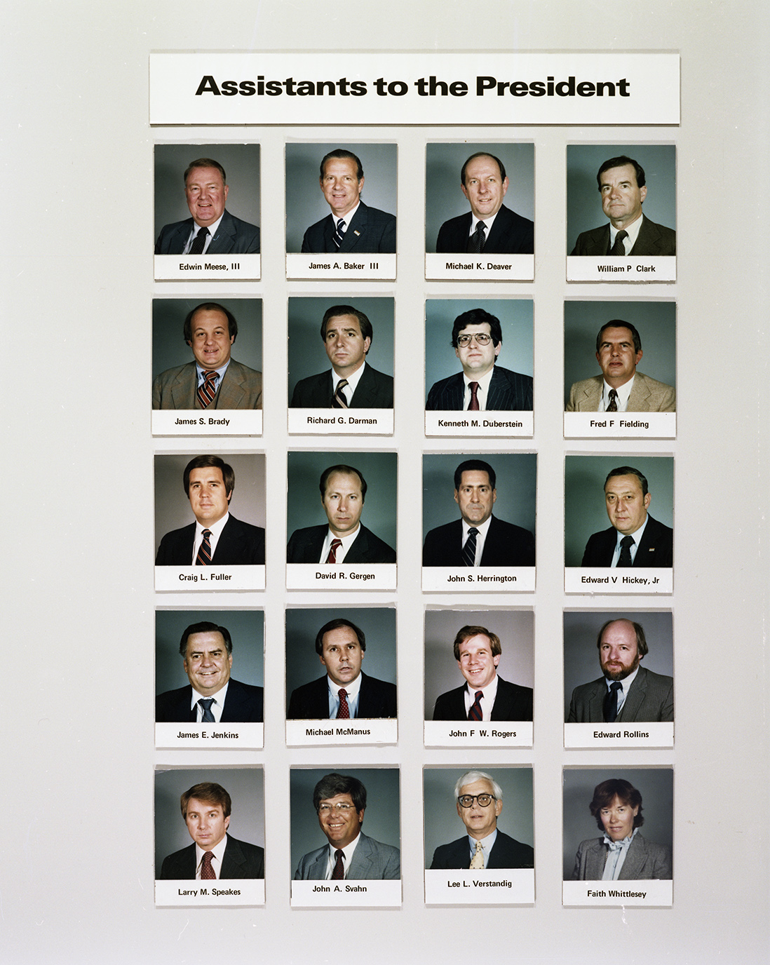 C17091 (01) 09/19/1983 … C17091 (01) … Portraits of Assistants to the Presidents … Washington, DC … head shots … White House … Ed Meese, James Baker, Michael Deaver, William Clark, James Brady, Richard Darman, Ken Duberstein, Fred Fielding, Craig Fuller, David Gergen, John Herrington, Ed Hickey, James Jenkins, McManus, Rogers, Rollins, Speakes, Svahn, Verstandig, Whittlesey … …