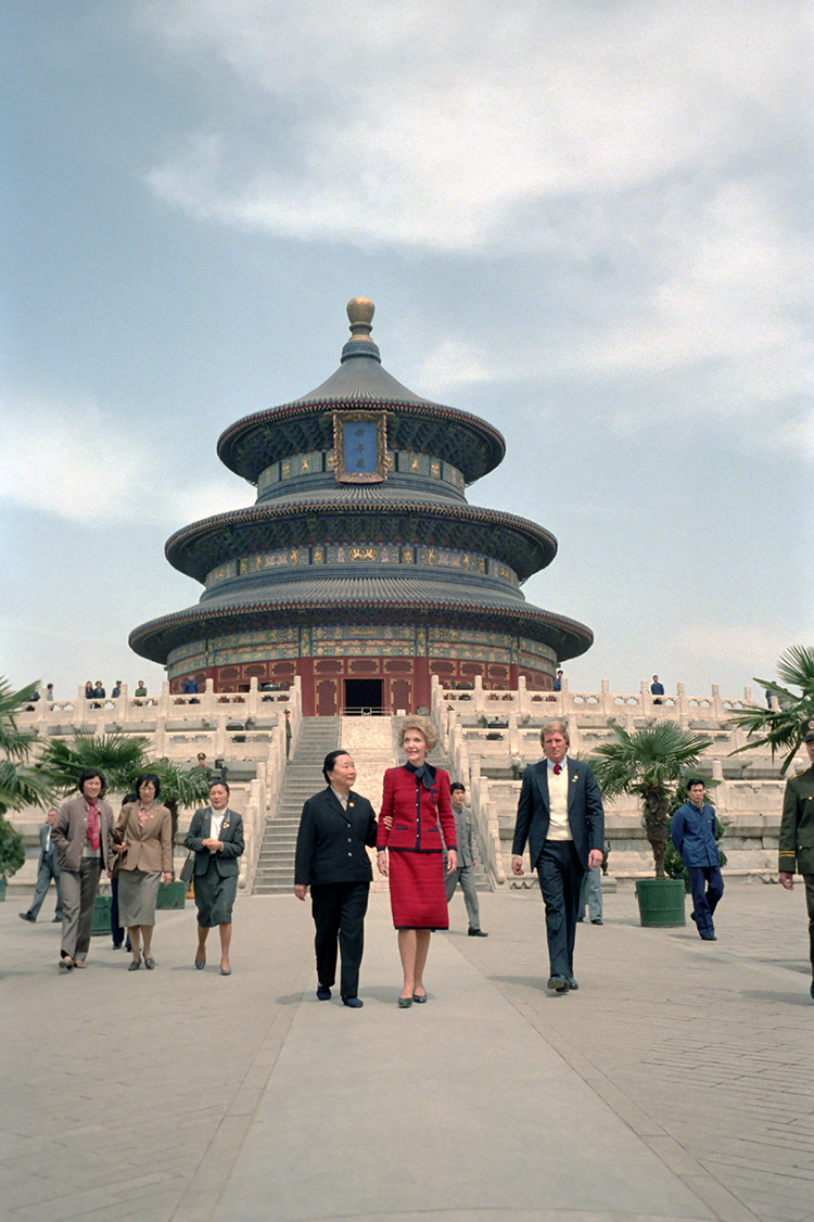 C21438 (01) 04/27/1984 … C21438 (01) … Trip to Peoples Republic of China, Visit to Temple of Heaven … Beijing, Peoples Republic of China … walking, posing for photos … Temple of Heaven … Nancy Reagan … …